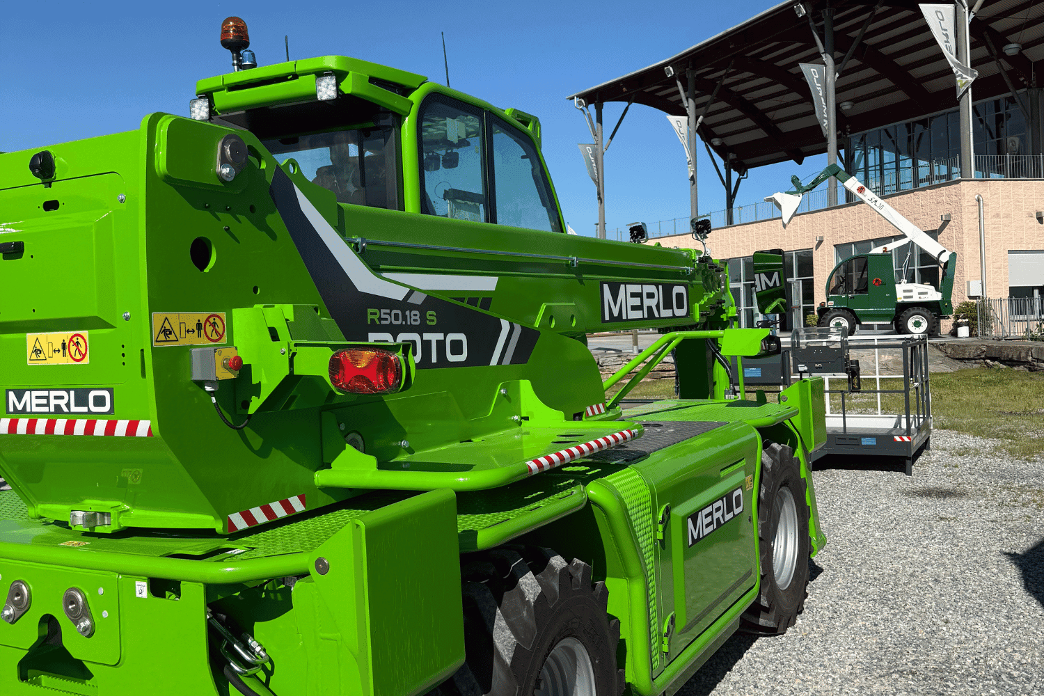 Tijdens ons bezoek kregen we een compleet overzicht van het machinegamma van Merlo. En dat is breder dan je op het eerste gezicht zou denken. Natuurlijk zijn ze vooral bekend van hun verreikers, maar daarnaast bouwen ze ook betonmixers, dumpers, rupsdumpers, werktrekkers en zelfs elektrische modellen voor gebruik binnen of in de stad. Alles draait om veelzijdigheid, efficiëntie en betrouwbaarheid.
