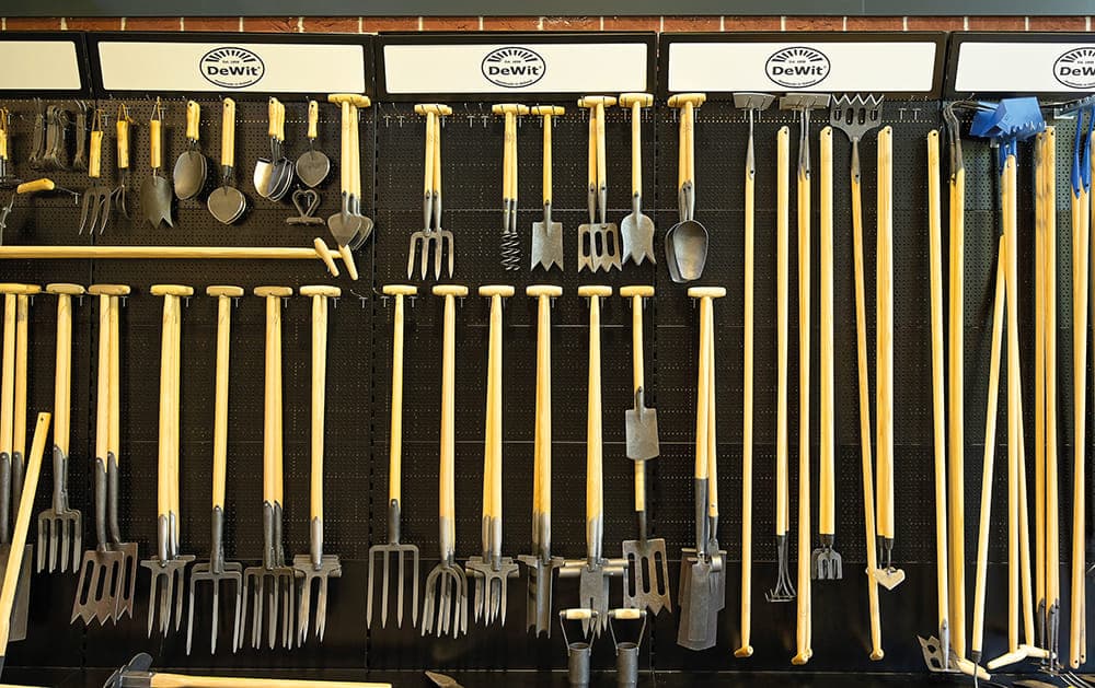 Het assortiment gereedschappen omvat een scala aan hoogwaardig tuingereedschap. Van schoffels tot handscheppen, van koevoeten tot grondboren, van harken en bijlen tot schoppen en spades en ander tuingereedschap: elk stuk wordt met dezelfde toewijding en zorg vervaardigd uit boronstaal, deels afkomstig van gerecyclede metalen. Wat 125 jaar geleden begon als een bescheiden dorpssmederij is uitgegroeid tot een modern industrieel bedrijf dat tuingereedschap van wereldklasse produceert. De gereedschappen –‘Voor planten, cultiveren en wieden’ - vinden via groothandels hun weg naar de detailhandel: “Maar ook aan de betere kwekerij waar de eigenaar zelf op de winkelvloer staat, willen we wel verkopen. Vakmensen herkennen elkaar, daar hoeven we niet over te praten.”