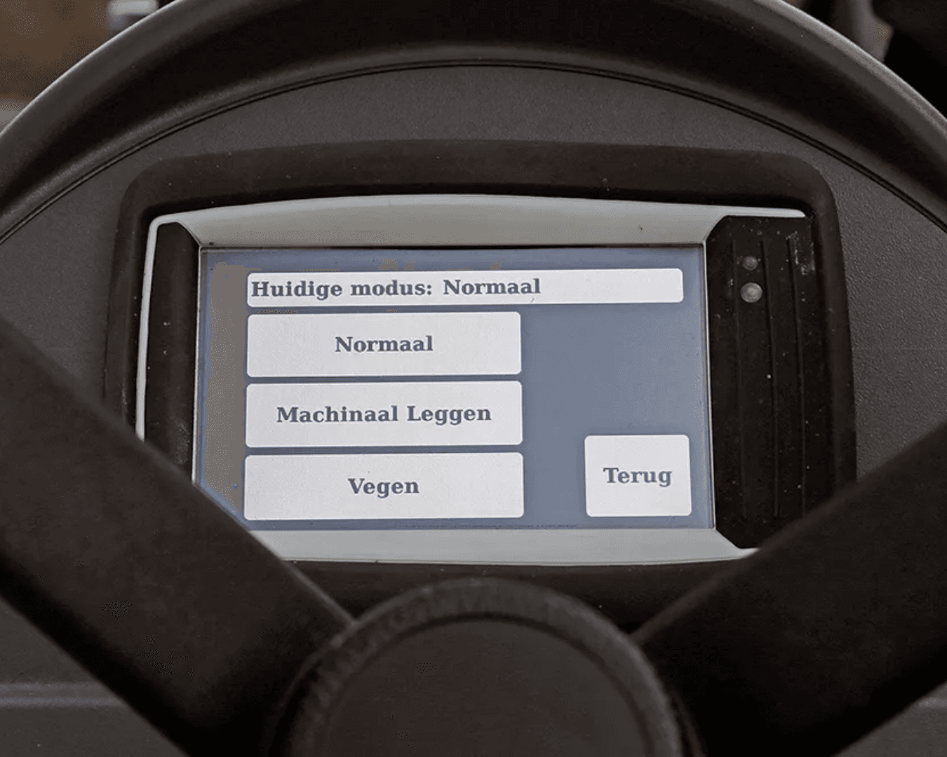 ‘Vergeet ook niet het lage geluidsniveau. Het aanbod is echter nog steeds beperkt. Daarom besloten we twee jaar geleden zelf een elektrische machine te ontwikkelen. Construeren zit ons in het bloed. We hebben veel ervaring opgedaan met aanpassingen, soms zeer ingrijpende. Een geheel nieuwe machine ontwikkelen was min of meer een logisch vervolg. We weten wat onze klanten verwachten: een doordachte constructie, lage onderhoudskosten en een lange levensduur. Heel belangrijk is ook een simpele bediening, die voor minder ervaren gebruikers geen drempels opwerpt.’