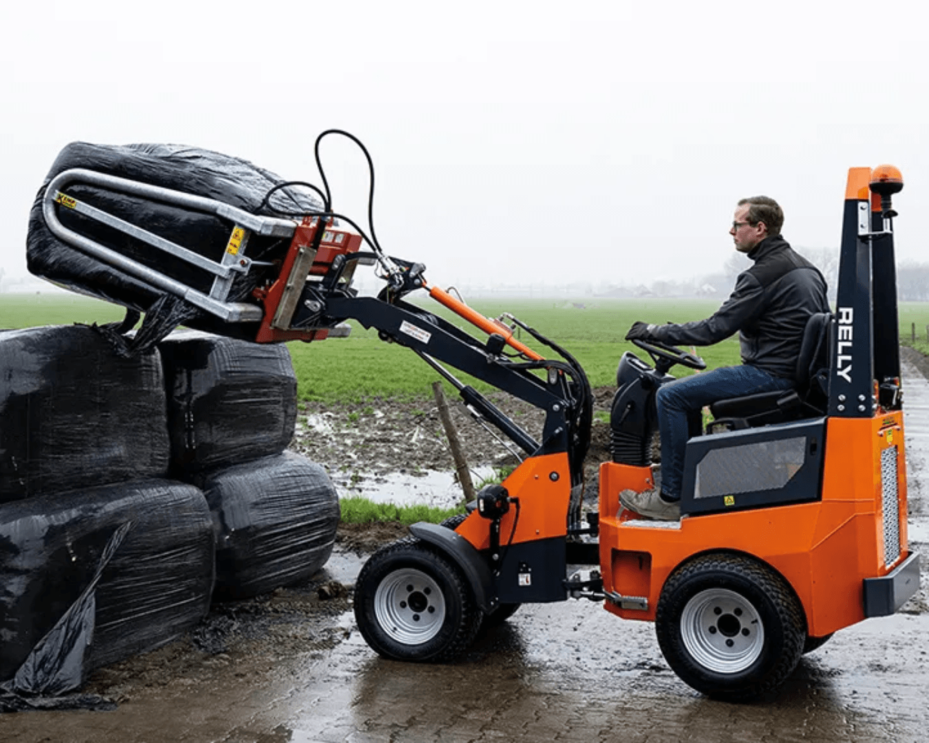 De Relly 1.0, met 950 kilo hefvermogen, kan op een volle acculading meer dan zes uur continu draaien. Met de grotere accu komt er nog anderhalf tot twee uur bij.