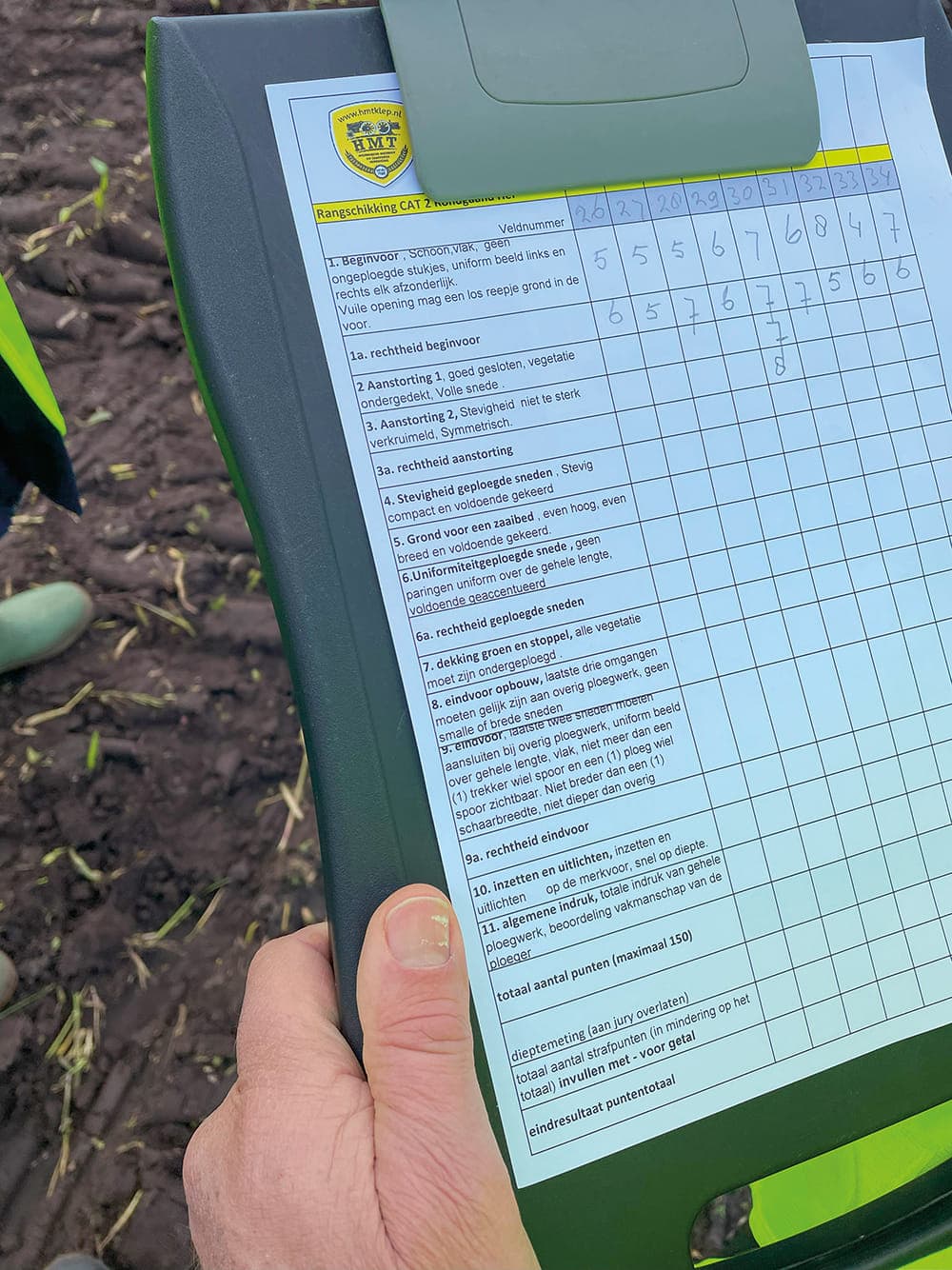 “We hadden ook dat veld erbij willen hebben,” wijst Bastiaansen, “maar dat is nog te nat. Dus zijn we beperkt in de mogelijkheden. Daarom hebben we de veldjes in de lengte gelegd, wat het ploegen moeilijker maakt. En de veldjes zijn kleiner dan normaal. Ze horen 100 meter te zijn, maar we hebben nu 45 x 14 voor de heen-en-weer met één schaar, en 45 x 16 voor de rest, met twee scharen.”