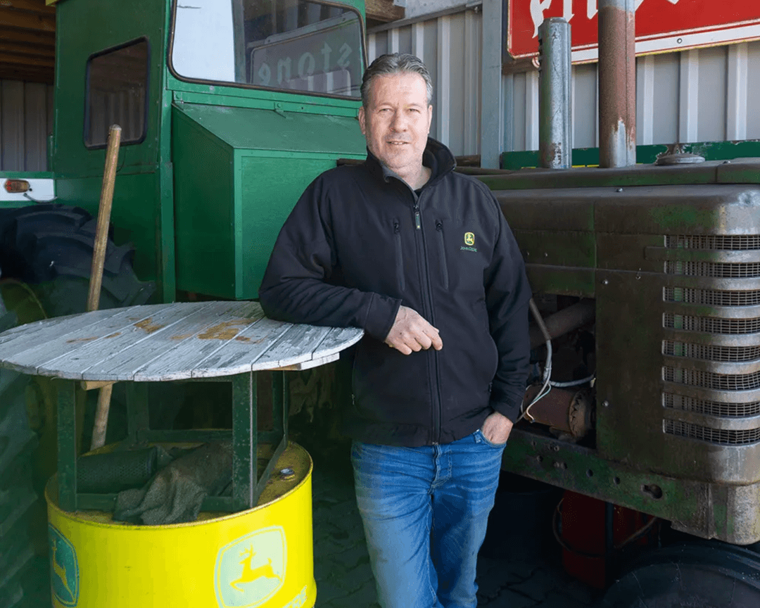 Het is al de 26e editie van de ploegwedstrijd in Rijsbergen, en voor het eerst doet Kees Bastiaansen zelf niet mee. Alle andere jaren was hij erbij als deelnemer, maar deze keer is hij er alleen als organisator namens de HMT (Historische Motoren en Tractorenvereniging). Samen met Noud van Gompel, coördinator en reglementskenner vanuit de HMT, ontvangt hij de deelnemers, int het inschrijfgeld en deelt bonnetjes uit voor een veldje – én natuurlijk voor de koffie.