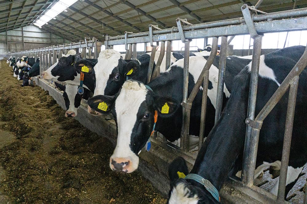 We hebben nu ongeveer honderd melkkoeien en nog wat jongvee. Als je uit wilt breiden met koeien, dan zul je ook uit moeten breiden met grond en dat gaat amper. De grond is erg duur. We zitten hier bovendien in een gebied met boomkwekers, die de prijs enorm opdrijven. De veehouderij uitbreiden is daarom een ingewikkelde optie.”
