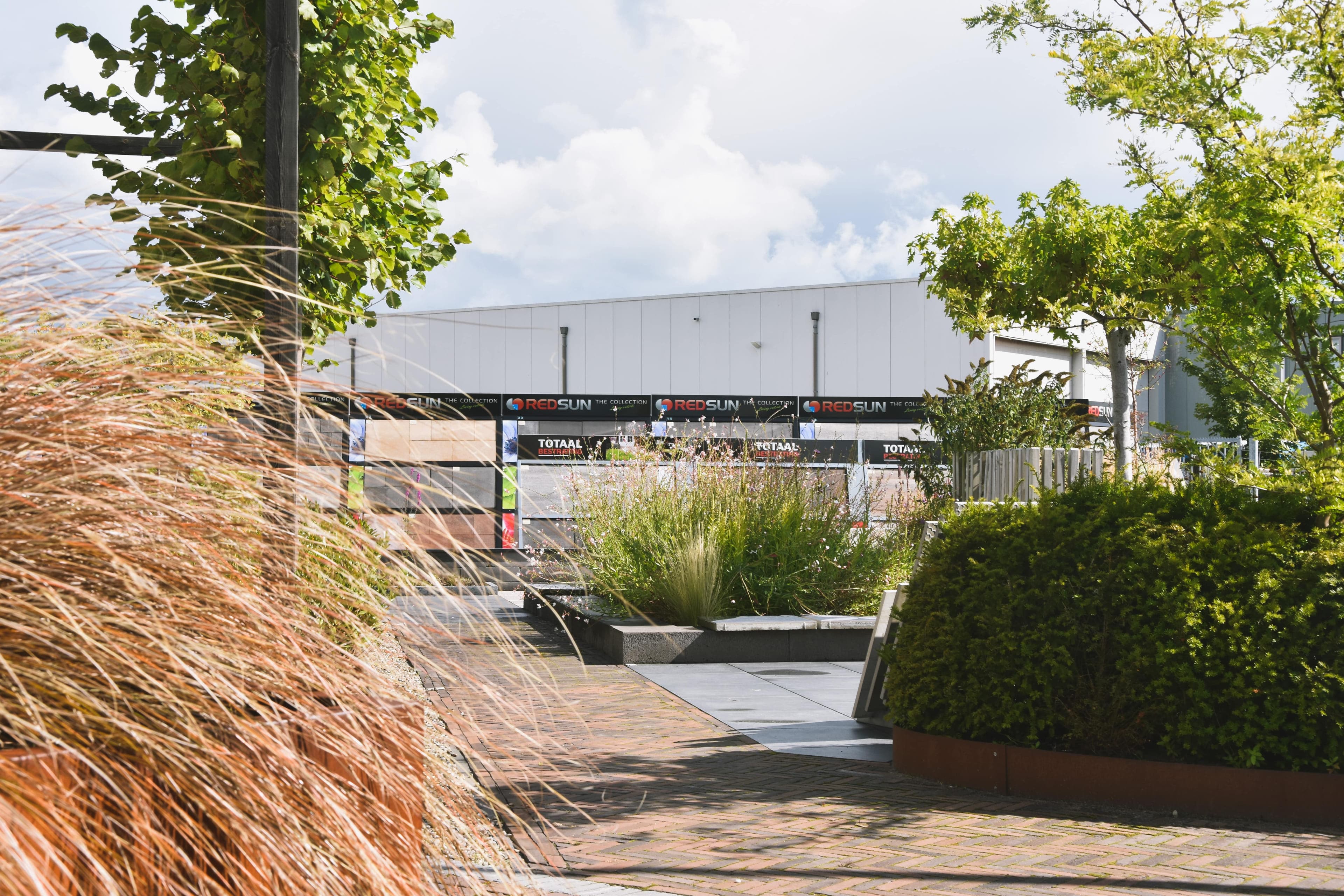 Om dit geheel kracht bij te zetten, is vorig jaar de buitenruimte aan de voorzijde ingericht, compleet met beplanting. “We hebben vijf verschillende tuinen ontwikkeld, van landelijk tot ecologisch, van strak tot speels. Zo kunnen we nog beter laten zien hoe je onze materialen kunt inzetten. Vlakke terrassen, afscheidingen en schuttingen, overkappingen, hoogteverschillen en trappetjes, doorkijkjes, plantenbakken en -borders, zitjes, zelfs een vijver van cortenstaal, pergola, staptegels en natuurlijk verlichting van het 12-volts systeem in-lite. “Overigens zien we ook steeds vaker sedum op daken. Hier zijn subsidies voor”, tipt Ivanna.