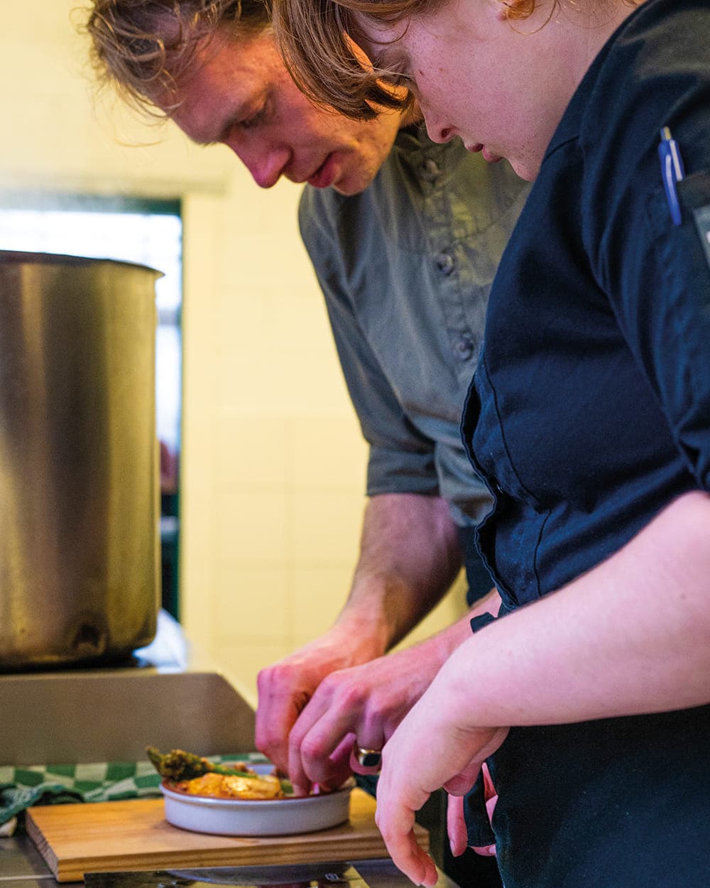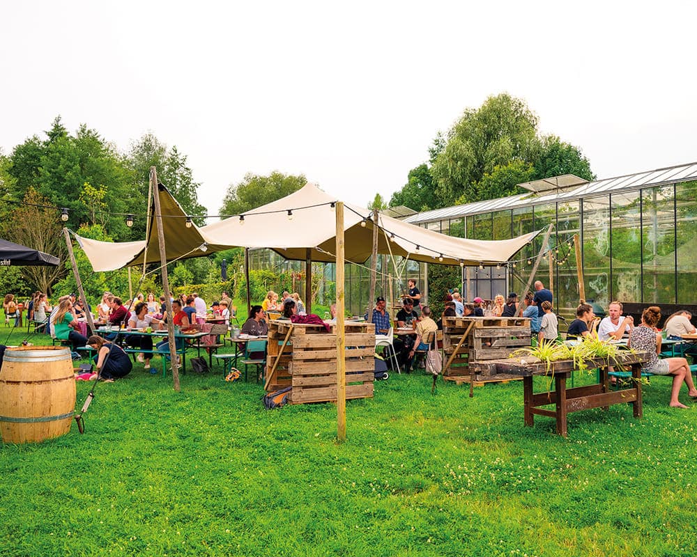 In de groene kas met exotische planten vinden we ook het DAVO proeflokaal Twello. Extra bijzonder aan deze locatie is het eten, want de keuken tovert hier met groenten en kruiden die hier worden geteeld. Ook voor de overige ingrediënten geldt dat ze zoveel mogelijk van eigen land of uit de regio komen. Op een ander deel van het veelzijdige terrein zijn er namelijk moestuinen in de open lucht. Wij nemen plaats aan een van de tafels buiten, het is immers prachtig zomerweer. Maar bij minder weer is het binnen ook goed toeven: met de huiskamer-achtige sfeer voel je je meteen welkom. We genieten van een heerlijk lokaal biertje en besluiten voor een uitgebreide borrelplank te gaan. Een unieke ambiance met zoet spelende kinderen en ouders die gezellig natafelen.