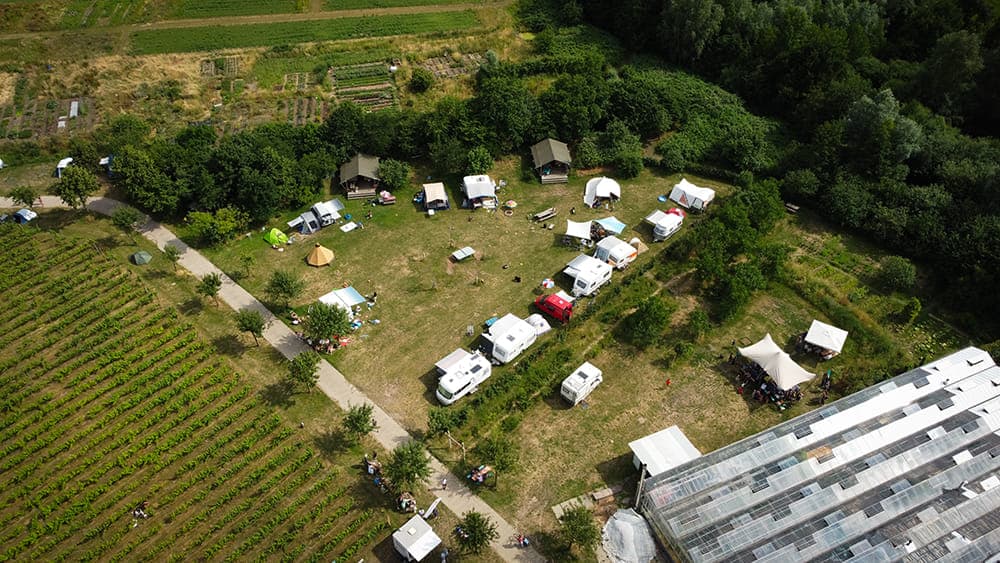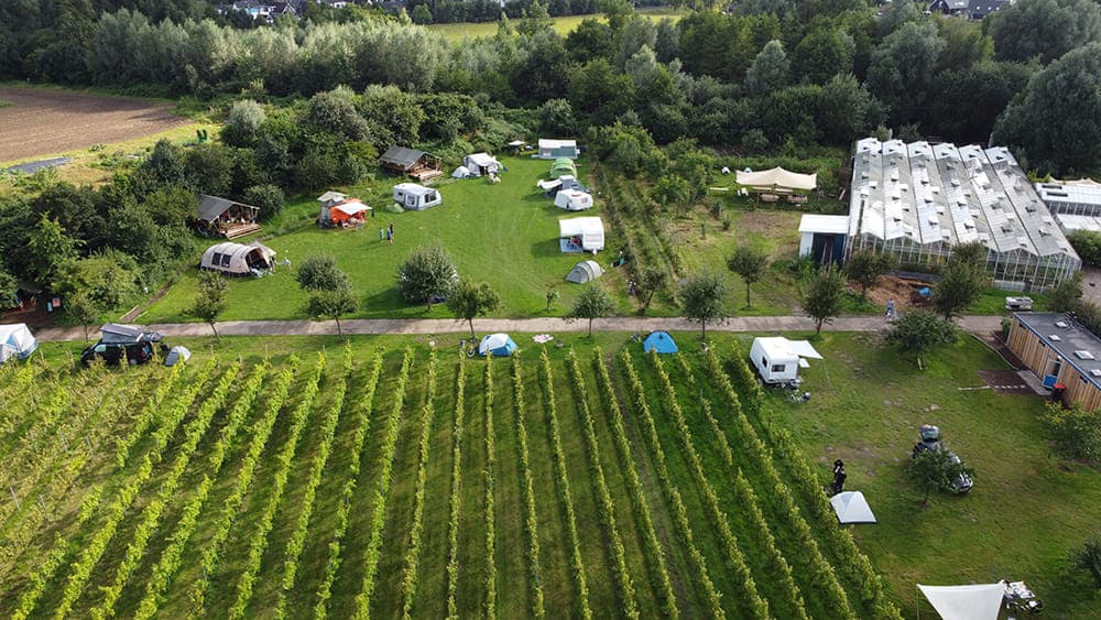 We kunnen ervoor kiezen om in de boomgaard, langs de wijngaard of op het grotere veld willen staan. Jonge ouders genieten hier van hun kinderen die in de aanwezige zandbak aan het spelen zijn, tieners doen een potje badminton, maar kiezen uiteindelijk voor tafeltennis, grootouders koesteren het samenzijn met kinderen en kleinkinderen en wij ervaren onmiddellijke rust na het opzetten van onze tent. Terwijl we onze spullen uitpakken, maken we kennis met onze buren, een jong gezin met twee kinderen. “We komen hier elk jaar een midweek,” vertelde de vader. “De kinderen zijn dol op het Blotevoetenpad met onderweg allerlei verrassingen en de natuurlijke speelweide. We hebben echt geen kind aan ze!”